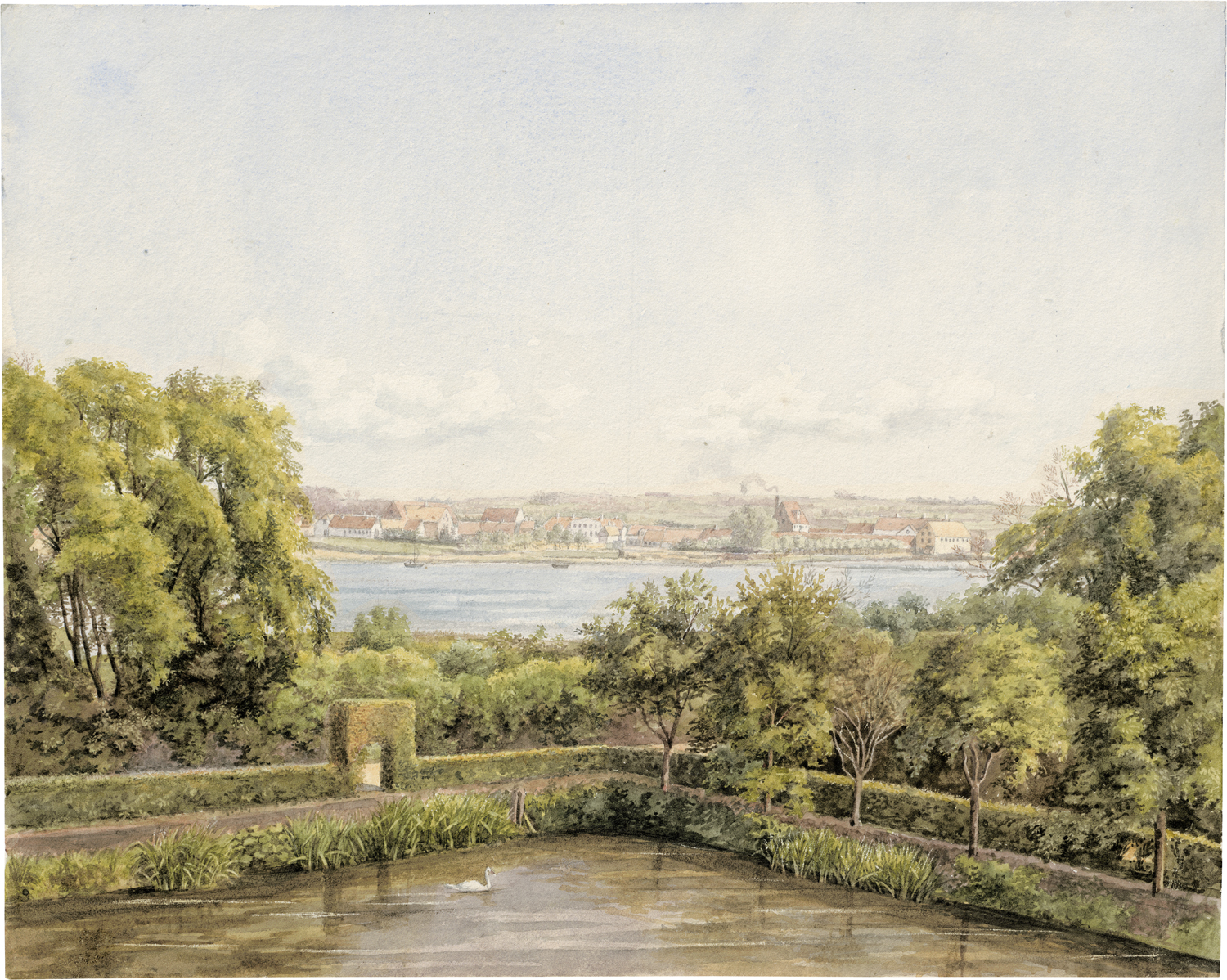 um 1840. Am Fjord von Præstø auf Seeland