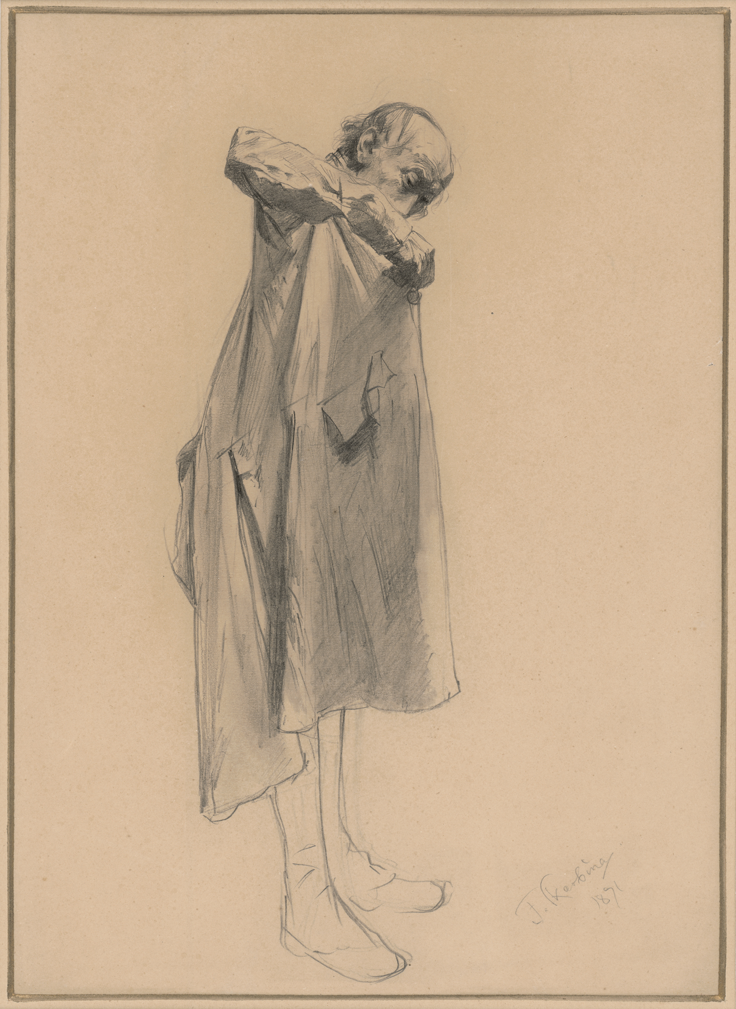 (1849-1910, Berlin)Stehender Mann im Mantel mit Hut und Gehstock