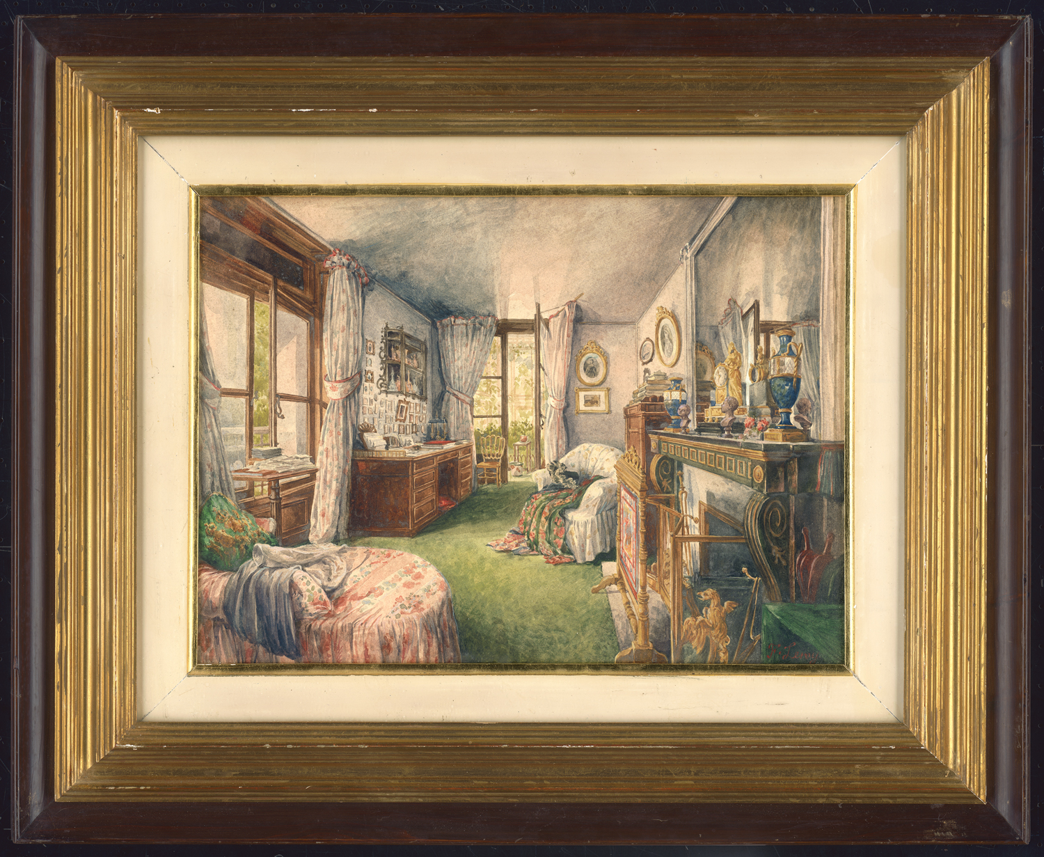 19. Jh. Kleiner Salon im Stil Napoléon III. mit Blick in einen Wintergarten
