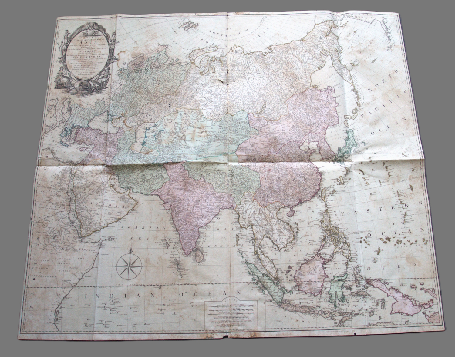 Bowles, Henry Carington. New Four-sheet-Map Atlas of the World displayed: in a New and complete Set of most accurate Maps of the World, Europe, Asia, Africa and America. 1 loser Titel. 5 kolorierte Kupferkarten aus zusammen 16 Segmenten. 53 x 62,5 cm bis 104,5 x 118,5 cm (Blatt). London, Carington Bowles, 1802.