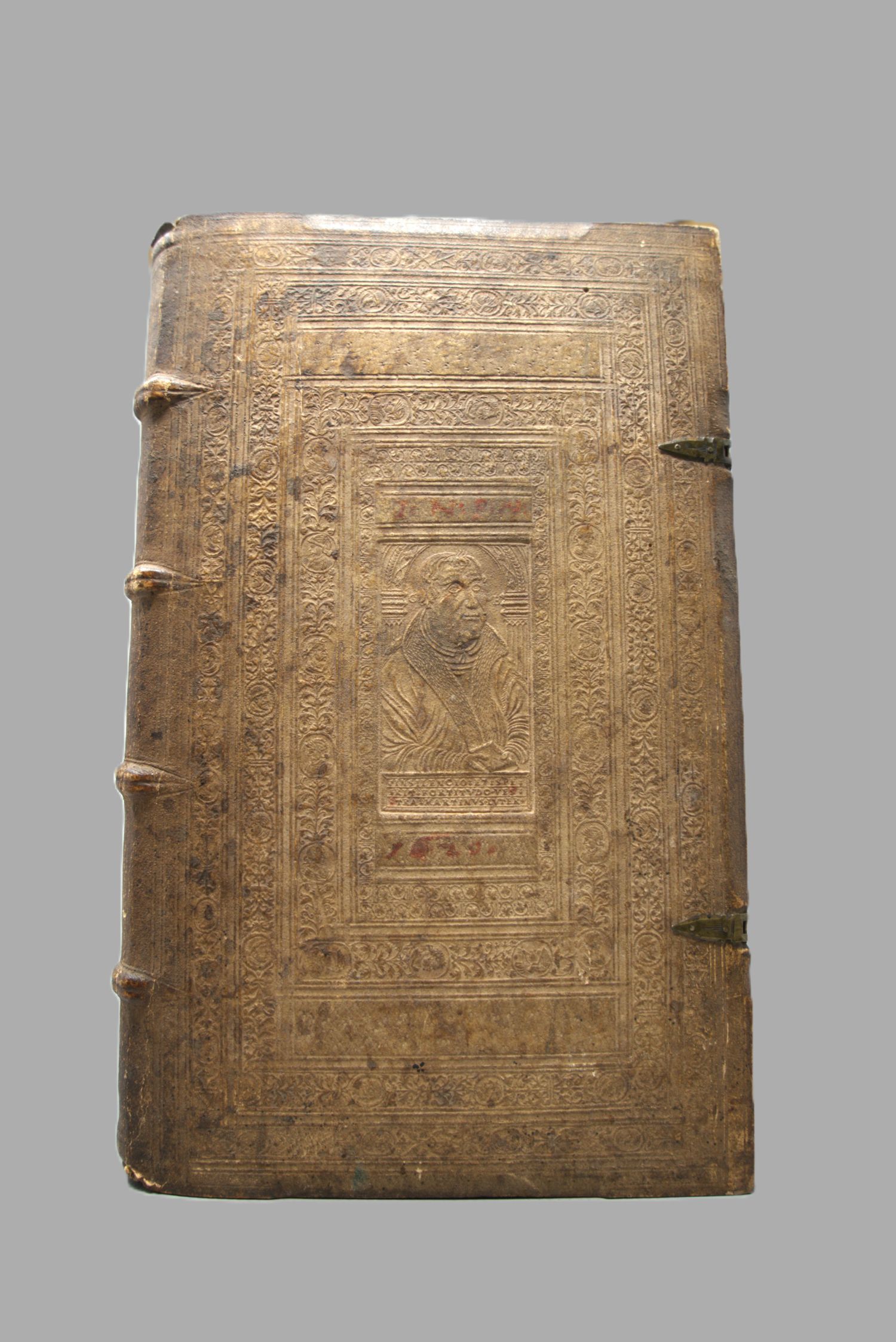 VD16 L 3456. – Zweite Ausgabe (EA Jena 1564). Umfangreiches Sach-, Quellen-, Begriffs- und Bibelstellenregister zur Jenaer Werkausgabe. Der schöne intakte Einband mit Portraitplatten von Luther und Melanchthon auf den Deckeln, bezeichnet mit den Initialen "GB" für den Wittenberger Buchbinder Gregor Bernutz (vgl. Haebler II, 302). – Etwas gebräunt oder braunfleckig, anfangs mit verblasstem Feuchtigkeitsrand. Titel mit zeitgenössischem Sinnspruch in roter Tinte.