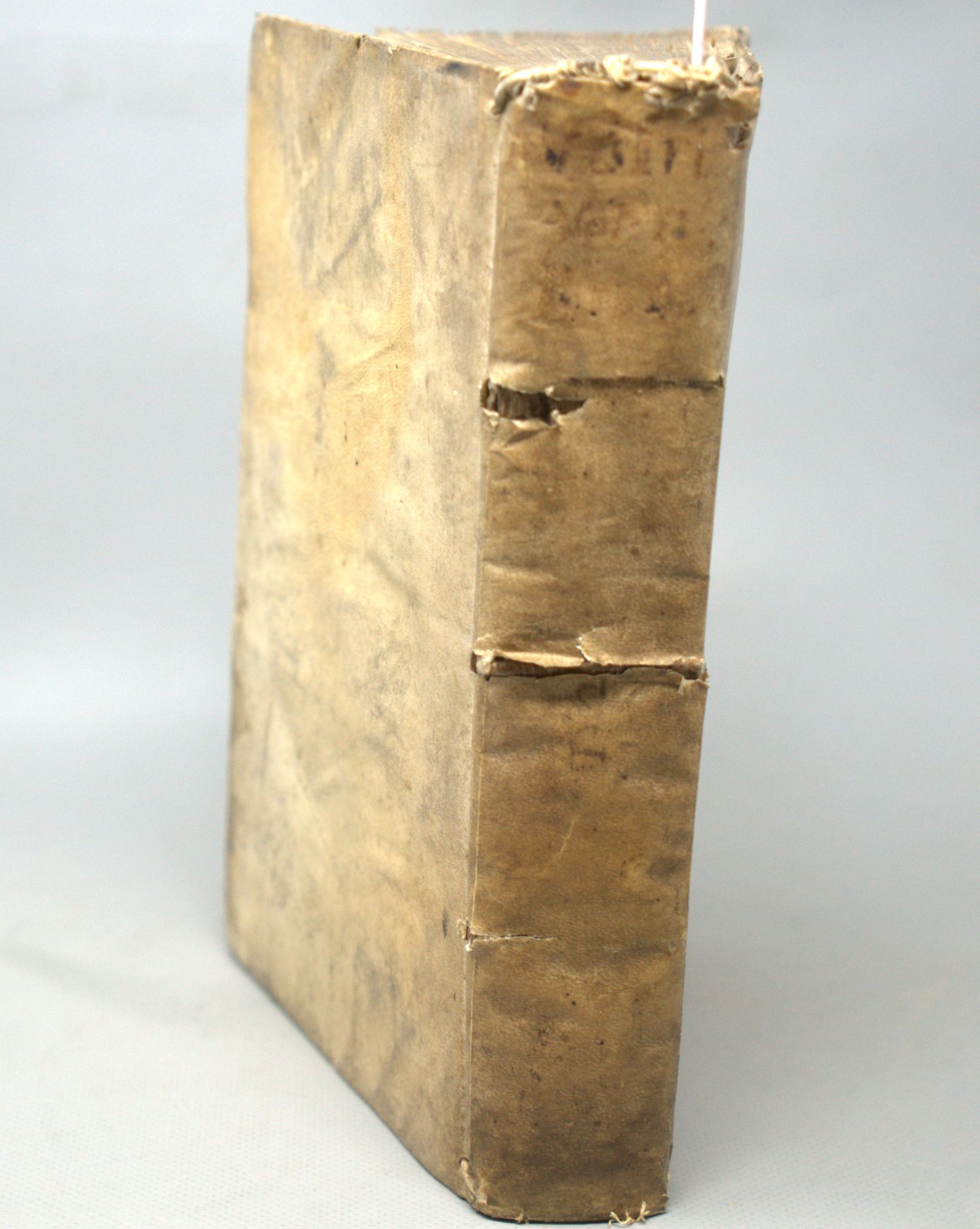 Vasari, Giorgio. Le vite de’ più eccellenti pittori scultori e architettori. Secondo, et ultimo volume della terza parte. Nel quale si comprendano le nuove vite dall'anno 1550 al 1567. Teil III (von 3) in 1 Band. 2 Bl., S. 371-1012 (recte 1004), 3 Bl. (le. w.). Mit mehrteililger breiter Holzschnitt-Bordüre, mit integrierter Vedute von Florenz, Holzschnitt-Druckermarke, ganzseitigem Schluss-Holzschnitt in breiter Bordüre sowie 21 3/4-seitigen Holzschnittportäts im Text. 24,5 x 16,5 cm. Flexibles Pergament d. Z. (mit Fehlstellen des Bezugs am Rücken über den Bünden, sonst nur gelegentlich leicht brüchig, teils etwas stärker fleckig, bestoßen und beschabt). Florenz, Giunta, 1568.