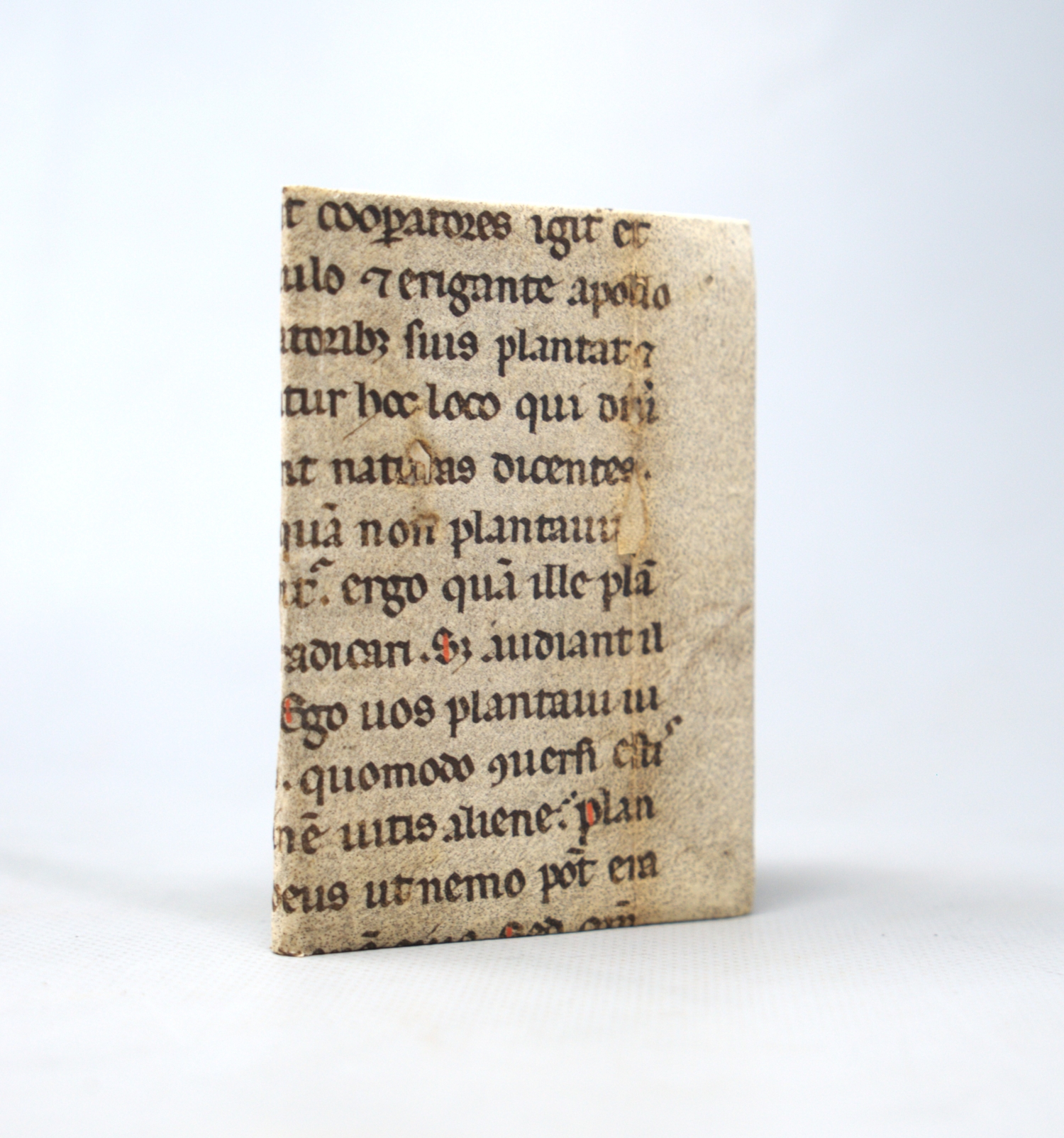 Der Inhalt folgt der etablierten Struktur der Krakauer Prognostica. Auf der Rückseite der Titelseite findet sich eine Erklärung der astrologischen und typographischen Zeichen. Es folgt ein ausführlicher Überblick über die wichtigsten lunarischen und planetarischen Konstellationen des Jahres, einschließlich der "glücklichen Zahl", günstigen und ungünstigen Tage sowie medizinischer Hinweise wie empfohlene Aderlasszeiten. Der eigentliche Kalender - der zentrale Teil des Büchleins - enthält für jeden Tag die liturgisch relevanten Heiligenfeste, die Mondposition im Tierkreis sowie die bedeutenden planetarischen Aspekte. Kurze Versmaximen beschließen jeden Monat. Das letzte Blatt zeigt ein Diagramm der für 1536 erwarteten Mondfinsternisse mit erklärendem Text sowie das Impressum "In Cracovia, anno Domini 1536". – Das Exemplar wurde ursprünglich als Einbandmakulatur in einem historischen Band genutzt und später vorsichtig entnommen und konserviert. Spuren dieser früheren Verwendung - vereinzelt Klebstoffreste und kleine Randverluste, mehrere Wurmschäden und einige Ausrisse bzw. Löcher und Fehlstellen durch Abrieb (teilweise mit Text und Bildverlusten, meist von den äußeren Rändern her), fleckig, gebräunt und teils mit Randansetzungen und Füllungen sorgsam restauriert. Die Holzschnitte sind insgesamt gut erhalten; kleinere Randverluste an einigen äußeren Rahmen - durch die frühere Verwendung als Einbandmaterial - wurden fachkundig verstärkt und beeinträchtigen weder Lesbarkeit noch Gesamteindruck. - sind noch sichtbar, wurden aber durch Faservestärkung professionell stabilisiert. Alle Blätter sind vollständig, der Druck ist klar, und das Papier hat seine frische Anmutung bewahrt. Heute ist das Werk in ein einzelnes Pergamentfragment des 12. oder 13. Jahrhunderts gebunden, geschrieben in regelmäßiger Rotunda und enthaltend einen Teil des Hieronymus-Kommentars zu Matthäus 15 - ein typisches, historisch stimmiges Beispiel mittelalterlicher Handschriftenmakulatur.