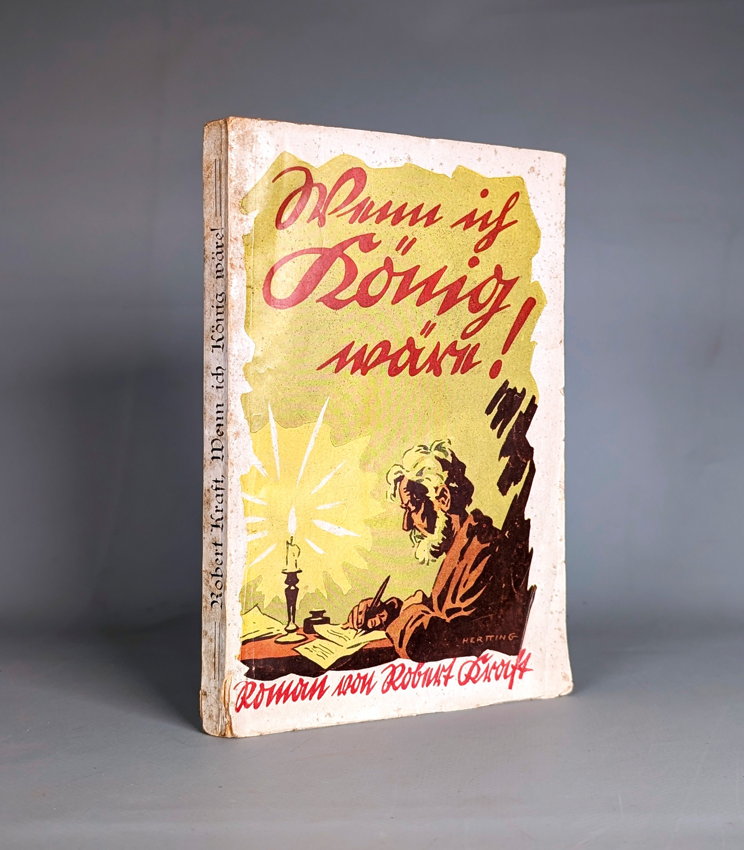 Kolportage. - Kraft, Robert. Wenn ich König wäre. Roman. 2 Bl., 252 S. Mit einigen Textillustrationen von Adolf Wald. 19 x 12,5 cm. Illustrierte OBroschur (etwas stärker fleckig und berieben, mit Randknicken). Dresden-Niedersedlitz, H. G. Münchmeyer, (1924).