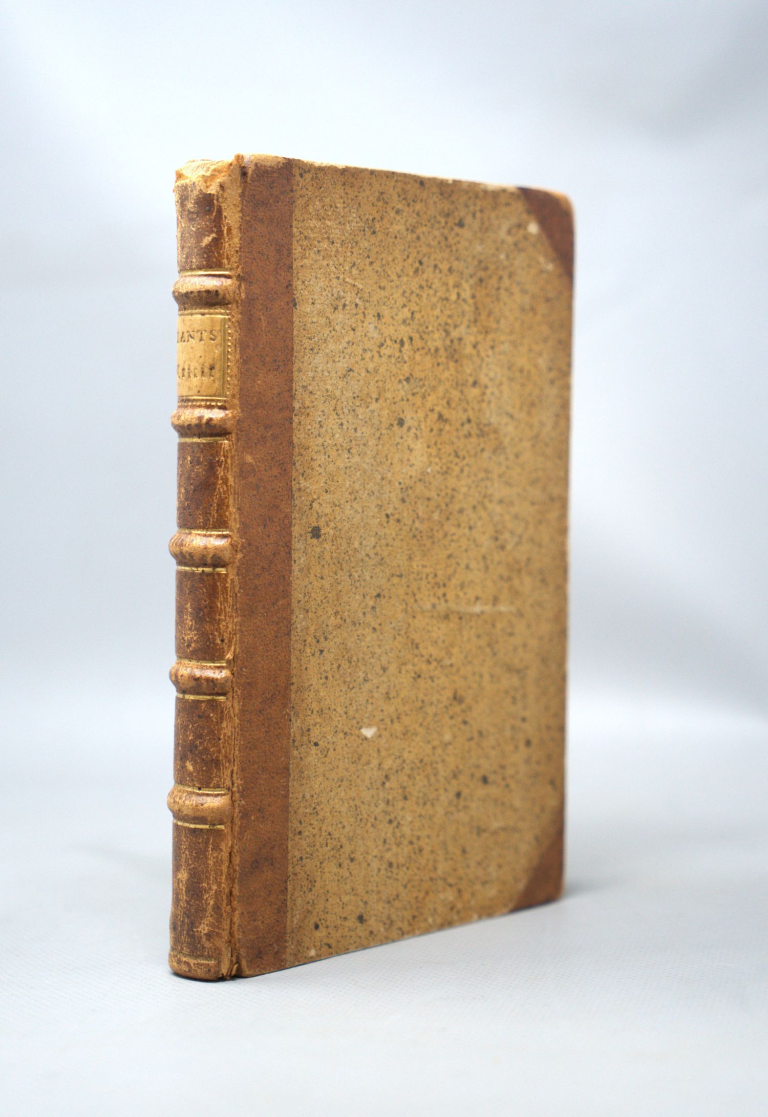 Kant, Immanuel. Critik der practischen Vernunft. 292 S. 19,5 x 12 cm. Halbleder d. Z. (etwas fleckig, berieben und bestoßen, oberes Kapital mit kleiner Fehlstelle) mit dezenter RVergoldung und goldgeprägtem RSchild. Riga, Johann Friedrich Hartknoch, 1788.