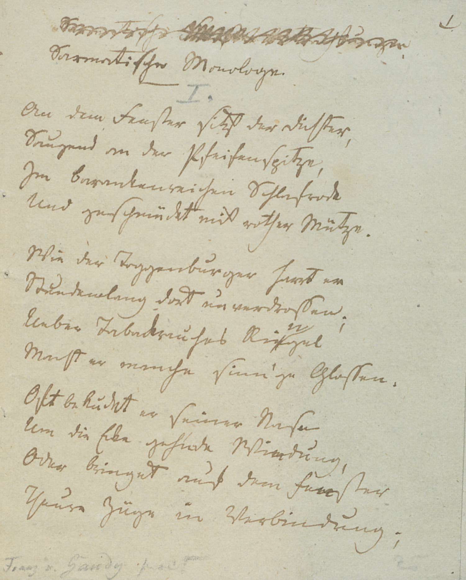 (1800-1840)Signiertes Gedichtmanuskript