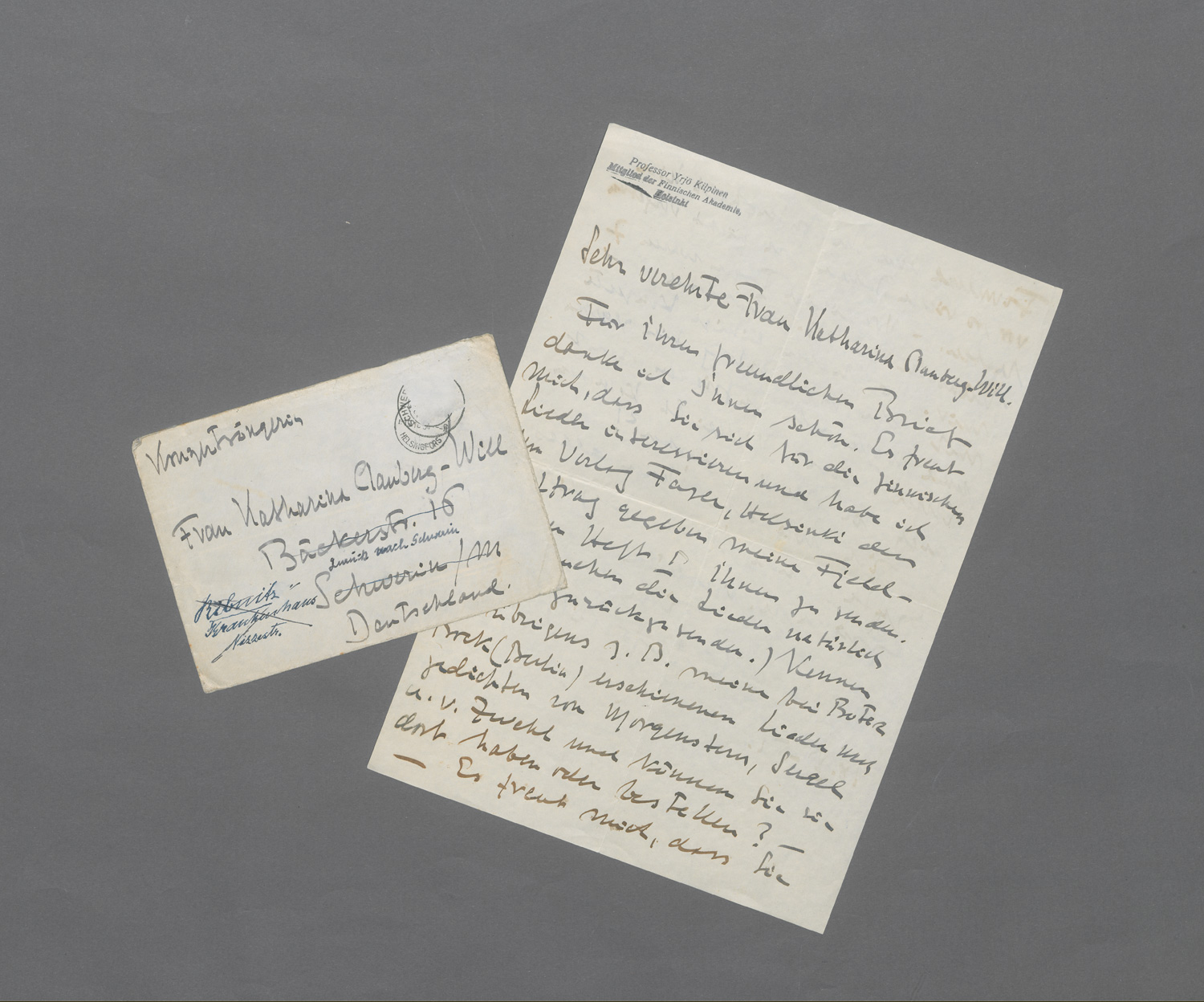Lot 2632, Auction  127, Kilpinen, Yrjö, Brief an Katharina Clauberg-Will. 1954