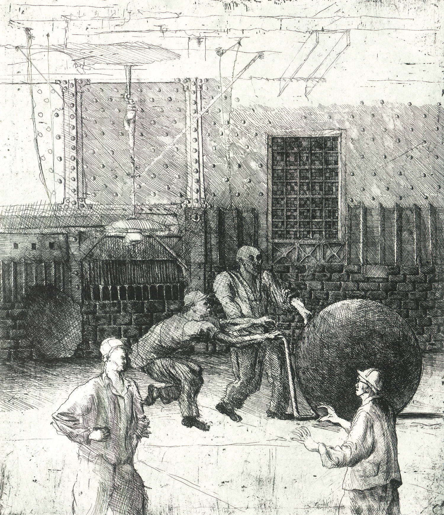 15. Graphik-Edition des Rembrandt-Verlages. Eines von 85 Exemplaren (Gesamtauflage 110 Ex.). – Bis auf die kleinen Mängel der Mappe sehr schönes, frisches Exemplar. Der "phantastische Realist" Peter Ackermann (1934-2007), der lange Jahre in Karlsruhe und Berlin tätig war, schuf seine Radierungen in altmeisterlicher Technik, und daher wurde seine Bildauffassung auch immer wieder mit der Piranesis und Canalettos verglichen.