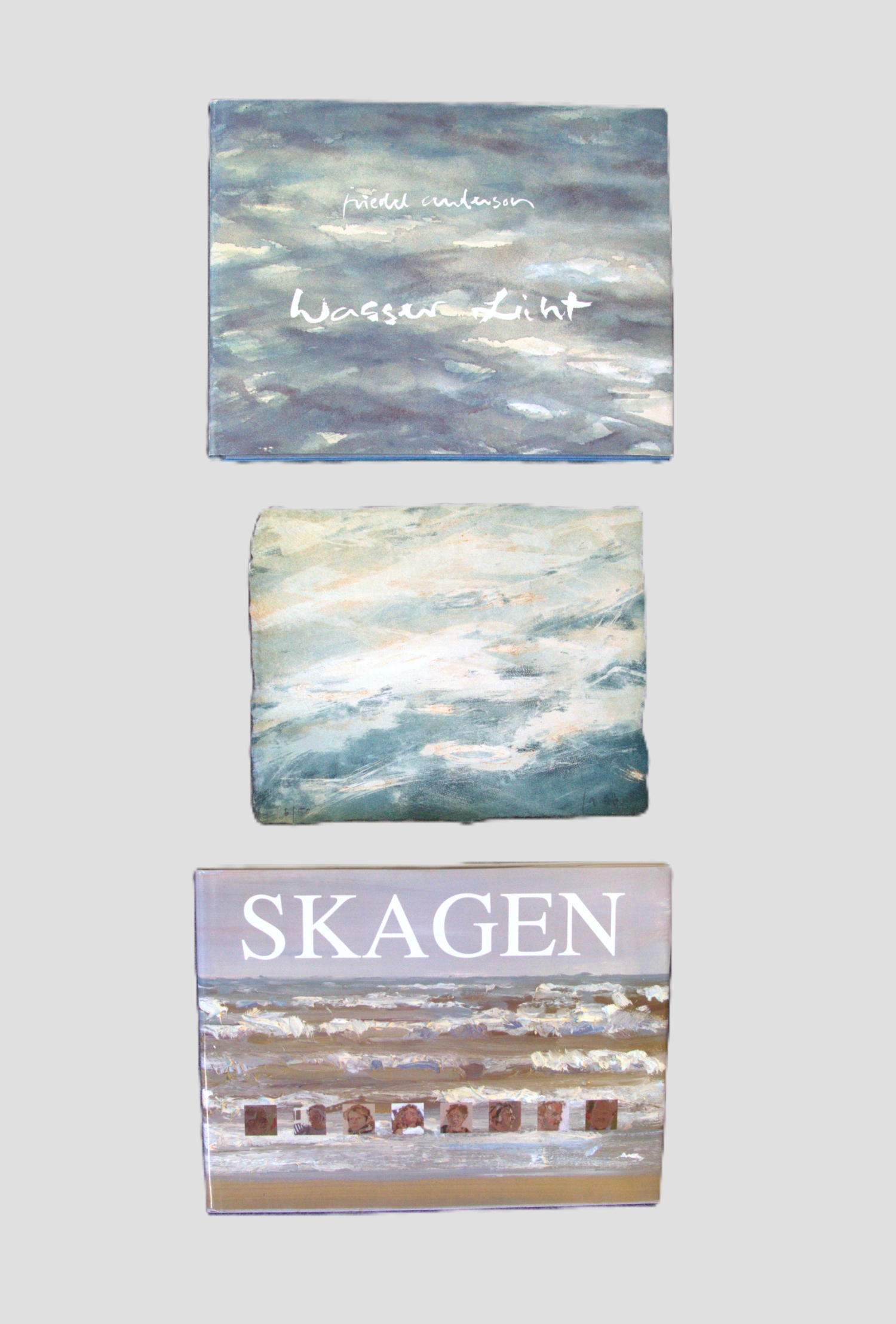 Anderson, Friedel. Wasser Licht. 60 S. Mit zahlreichen, meist ganzs. farb. Abbildungen und einer separaten Original-Farbradierung. 21 x 26,5 cm. OPappband mit OSchutzumschlag. Schleswig, Villa Eulenburg, 1996.