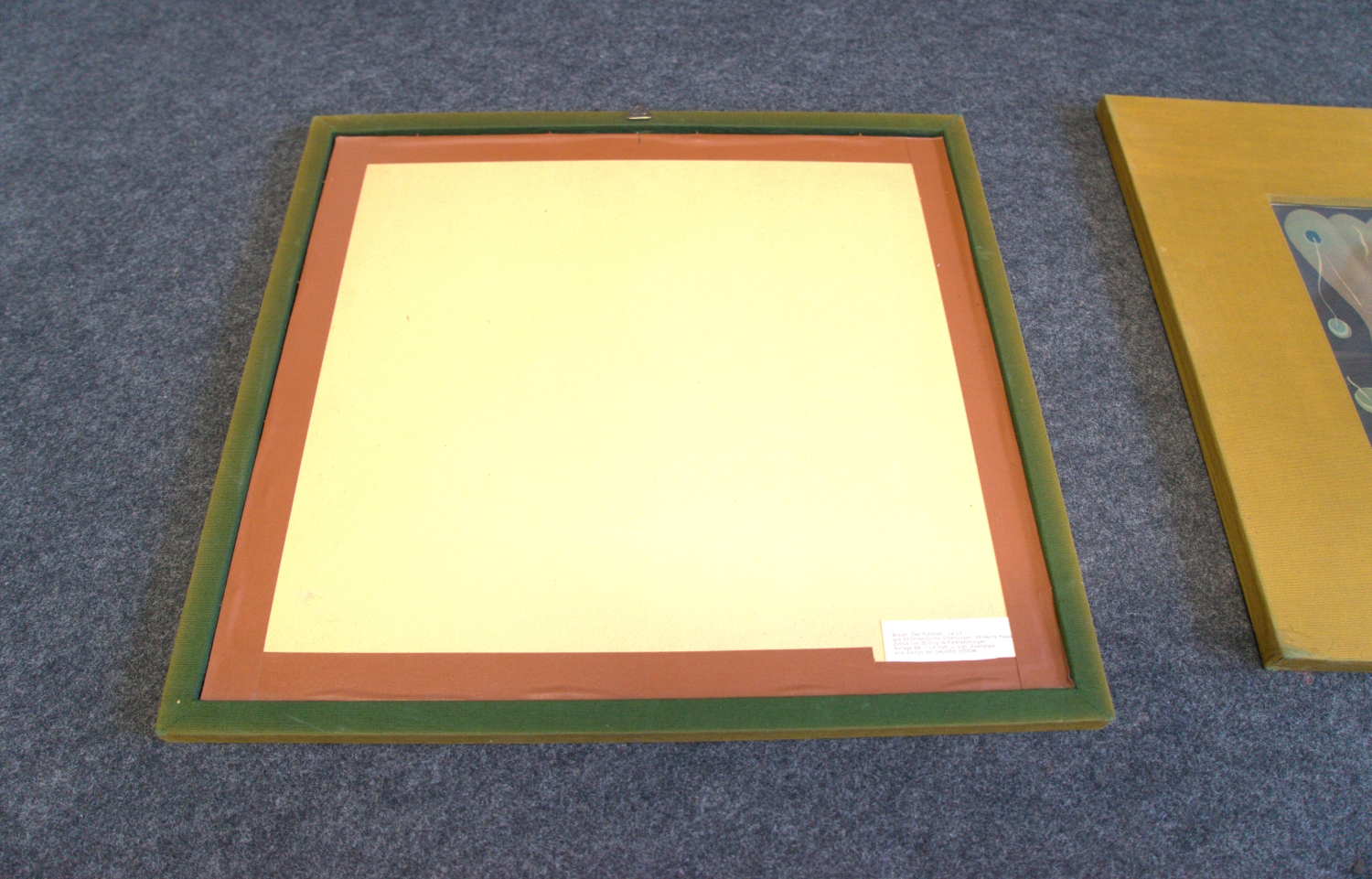 Brauer, Arik. "Das Ruhebett" (Le Lit) und "Der Schlaf" (Le Sommeil). 2 Blätter aus "XX Chassidische Erzählungen / XX Récits Hassidiques". Originale Farbradierungen. Ca. 20,5 x 25,5 cm. Unter Glas gerahmt in mächtige, leinenbezogene Holzrahmen (gering angestaubt, leicht bestoßen) 41,5 x 44 cm. (Frankfurt, Editeuropa & Galerie Sydow 1972-1973).