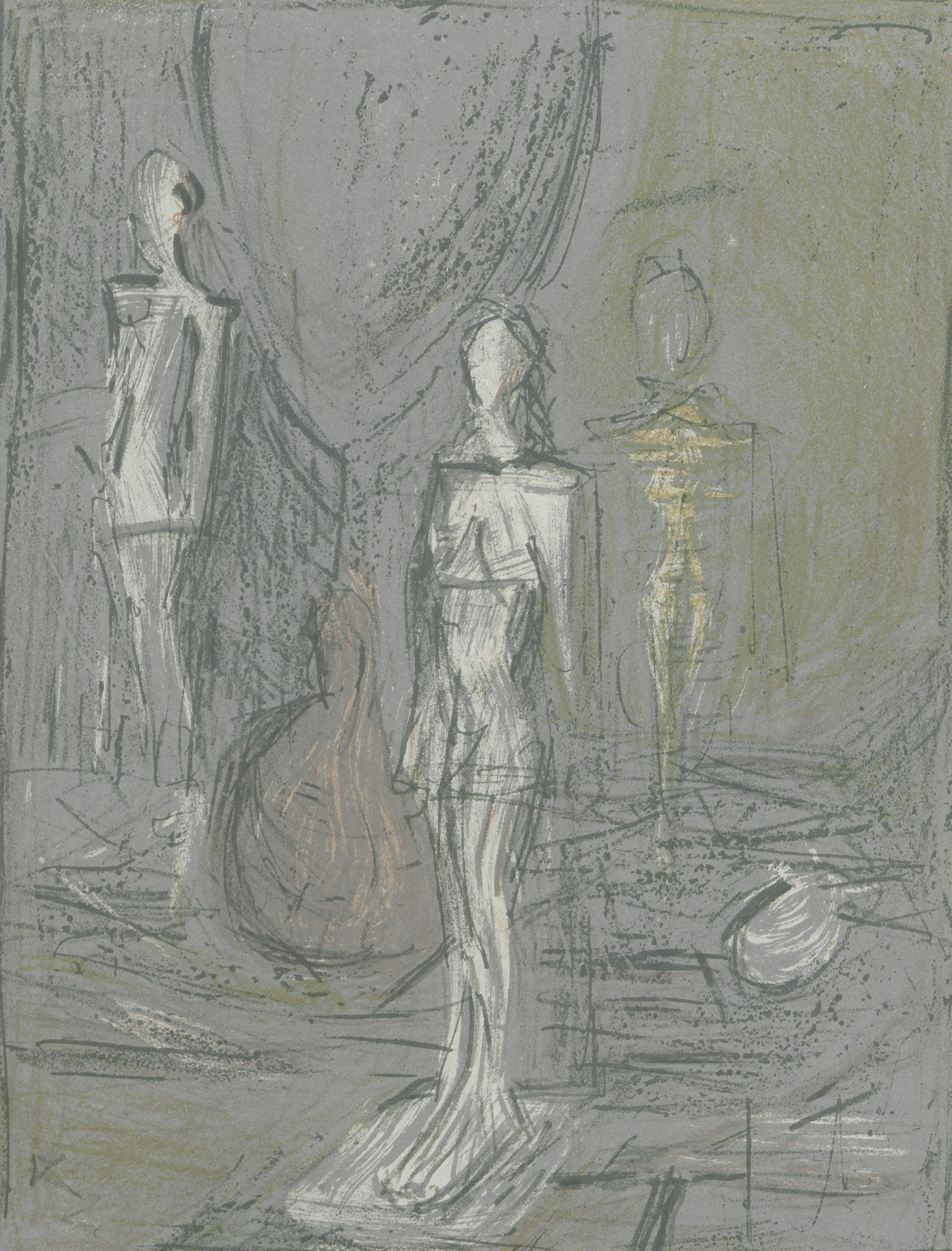 Leicht gebräunt, sonst gutes Exemplar. – Giacometti, Alberto. - Derrière le miroir. Nr 127. 23 S., 2 Bl. Mit 14 Lithographien (davon 2 doppelblattgr. und 1 Umschlagillustr.) von A. Giacometti. 38 x 28 cm. OUmschlag (etwas stockfleckig und minimal bestoßen). Paris 1961. - Maeght-Verz. 52. Lust 148-161.
