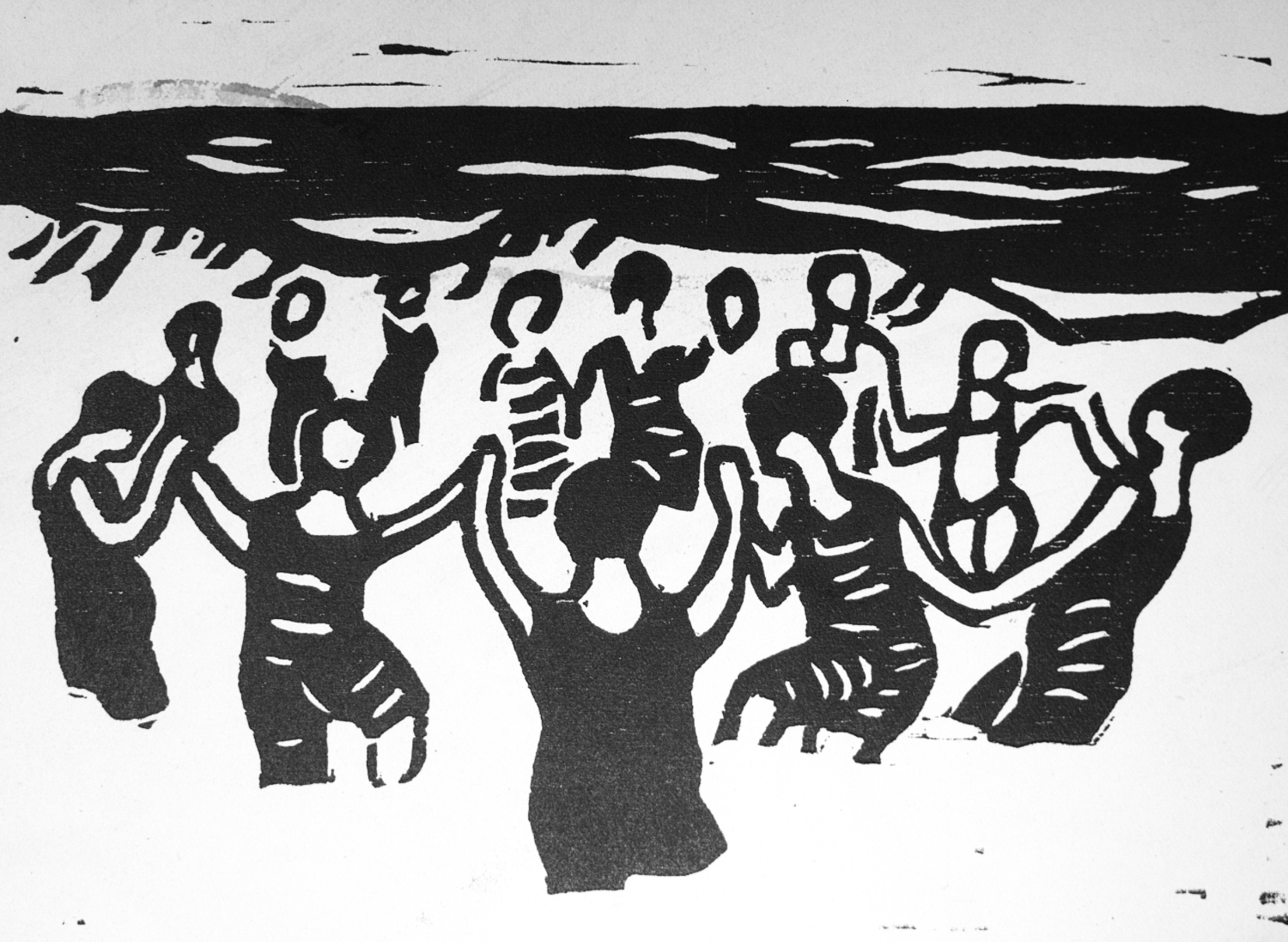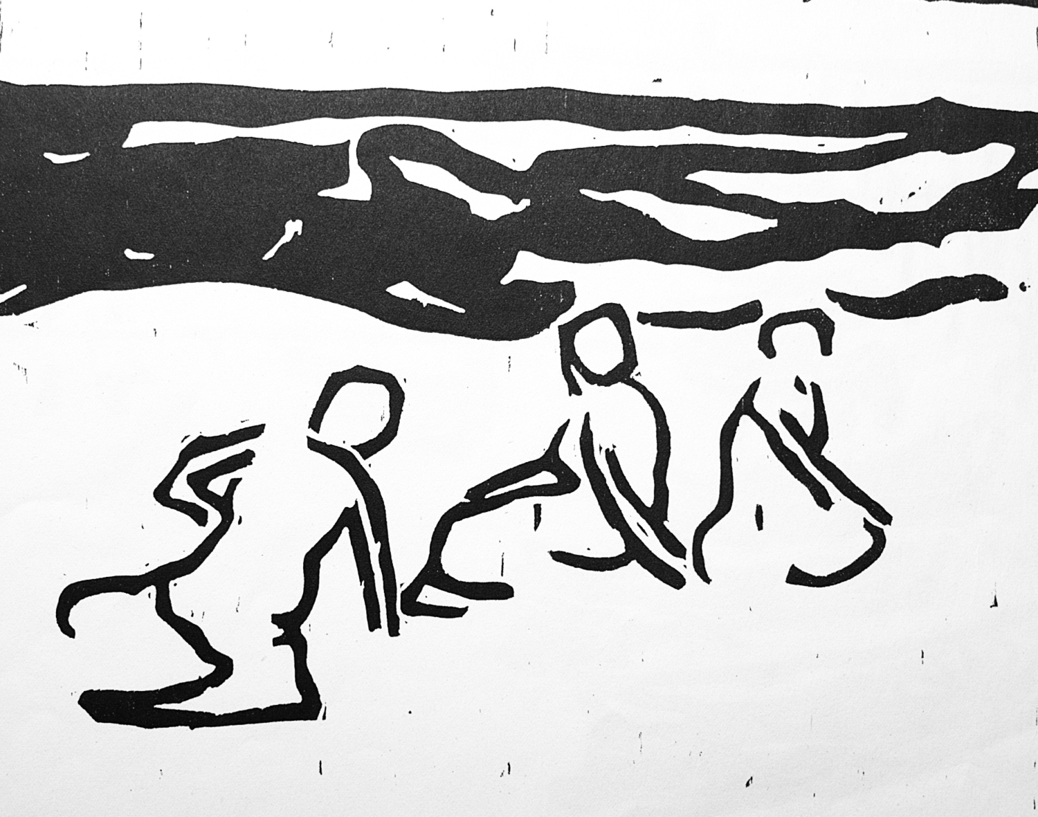 Segal, Arthur. Vom Strande. Acht Original-Holzschnitte. 8 (inkl. Titel) Holzschnitte. 8 Bl. 28 x 34 cm. Privater Karton mit Fadenheftung. Berlin-Wilmersdorf, A. R. Meyer, (1913).