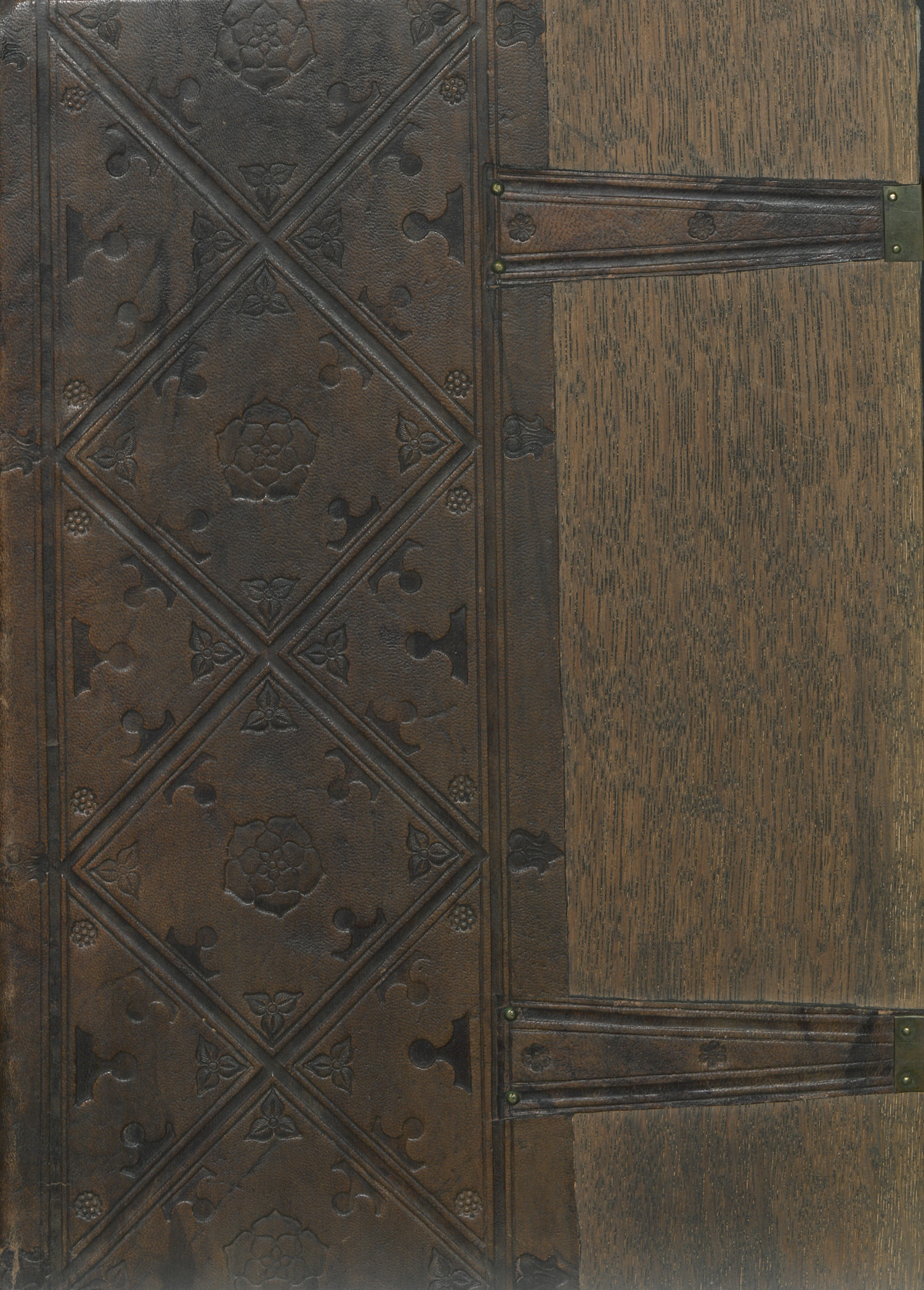 Der bemerkenswert schöne Einband orientiert sich an der Gestaltung der gotischen Inkunabeleinbände des späten 15. Jahrhunderts mit Filetenmustern und vielfachen Einzelstempeln, Rosen, Blüten, Blättern etc. – Beiliegt: Gautier de Coinci. Drei Legenden Unserer Lieben Frau ...". 2 nn., XIX num., 1 nn. Bl. Text in Holzschnitt und Buchschmuck in Blau und Rot. 29 x 21 cm. Holzdeckelband mit breitem blindgeprägten Kalbslederrücken über 4 Bünden (Gelenke minimal brüchig), 2 an Nägeln befindlichen Messingschließen (ein Schließbeschlag fehlend). (Wien, Leopold Heidrich, 1921). - Wiener-Einblattdrucke Nummer 1. Eines von 200 Exemplaren (Nummer lxxxvj). - Sehr sauber und frisch und wohlerhalten.