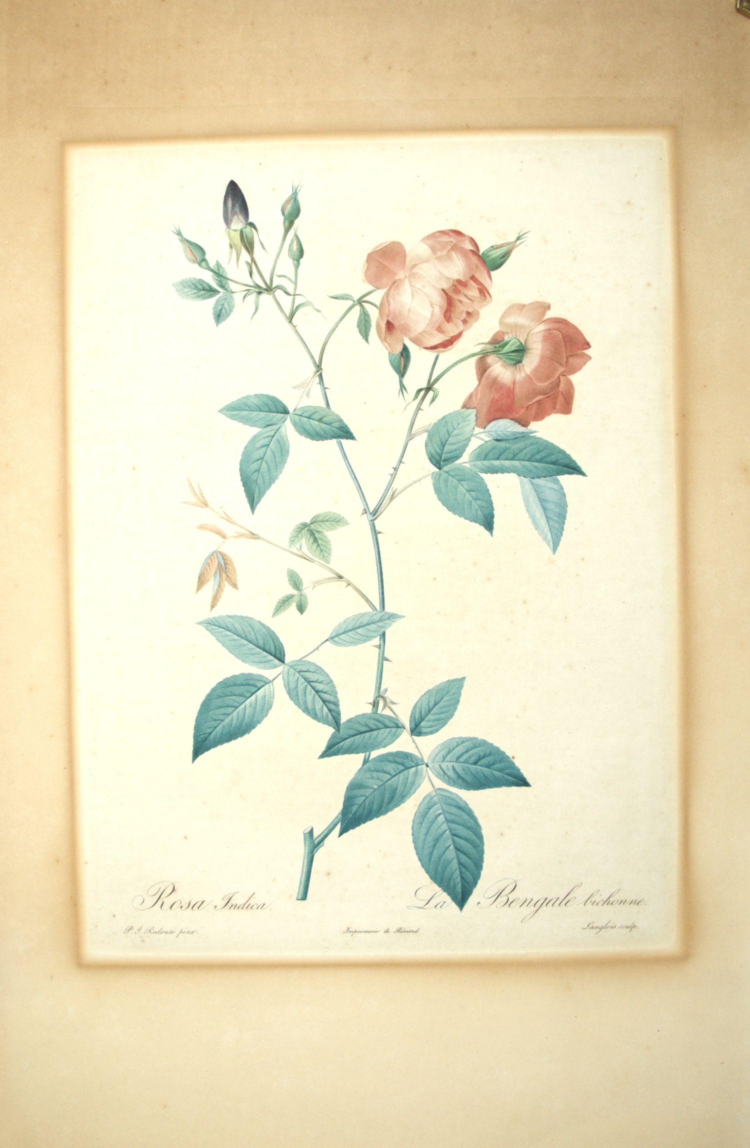 Vgl. Nissen 1599. – Vorhanden sind: "Rosa Indica", "Rosa Multiflora carnea", "Rosa Kamtschatica" und "Rosa Redutea rubescens" aus der Folio-Ausgabe Redoutés einflussreichen Blumenwerks "Les roses". – Nicht ausgerahmt, Versand nur ohne Rahmen. Teils stark gebräunt und etwas fleckig. In der besonderen Technik des Farbstichs und mit zusätzlicher feiner Kolorierung.