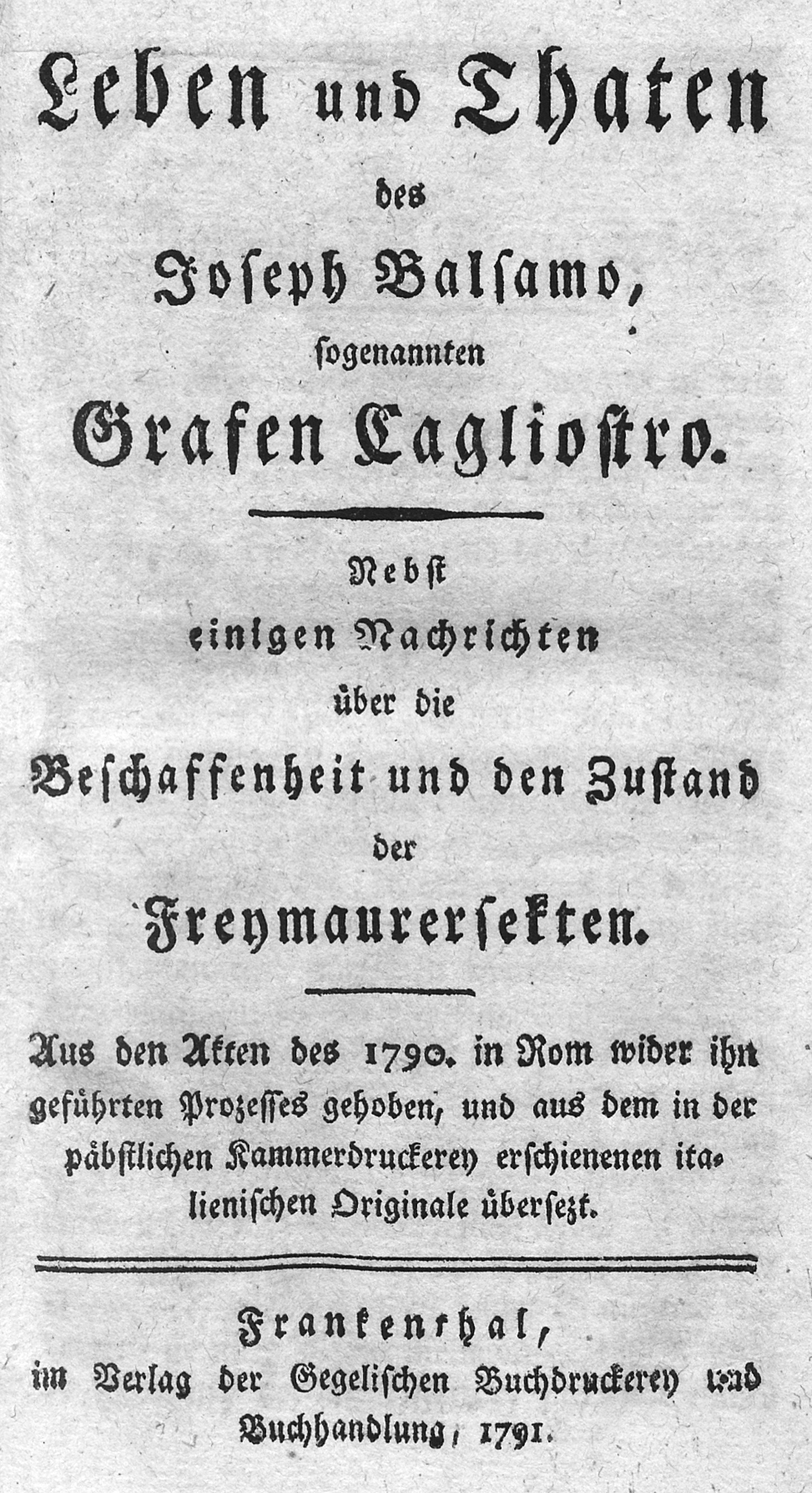 (1737-1821)Leben und Thaten des Joseph Balsamo
